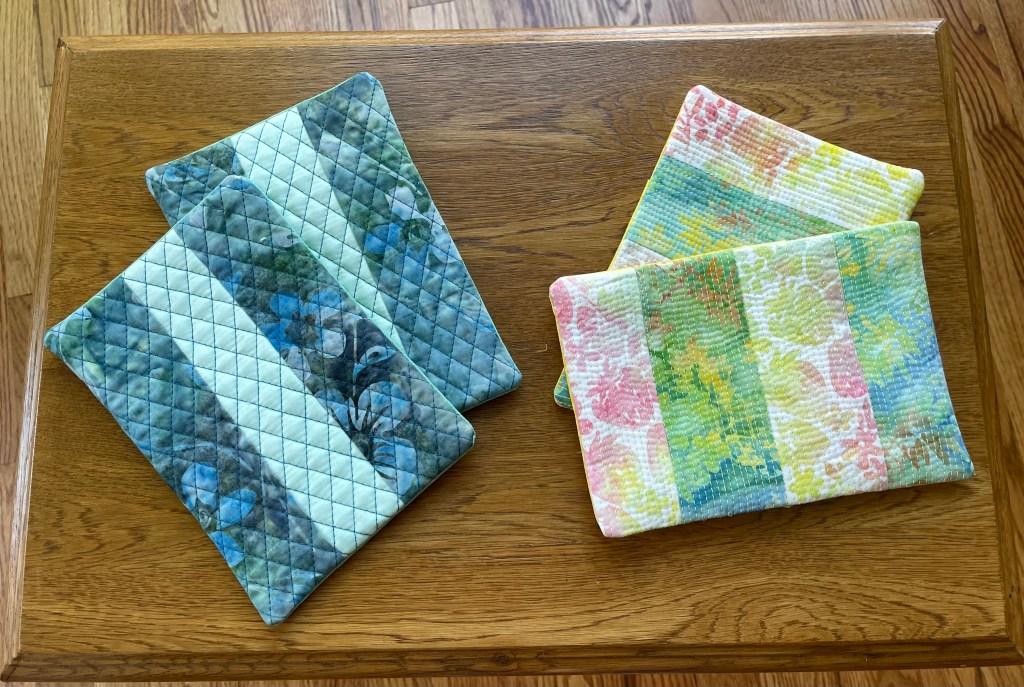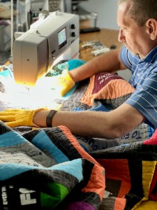 Armed with a sewing machine inherited from his friend Bill, and another from his late mother, he got to busy. He now makes a variety of quilted fabric objects d’art on a commission basis and, frankly, whenever he wants. This site celebrates his work and, if it isn’t sold out, you might just be able to buy something for yourself.